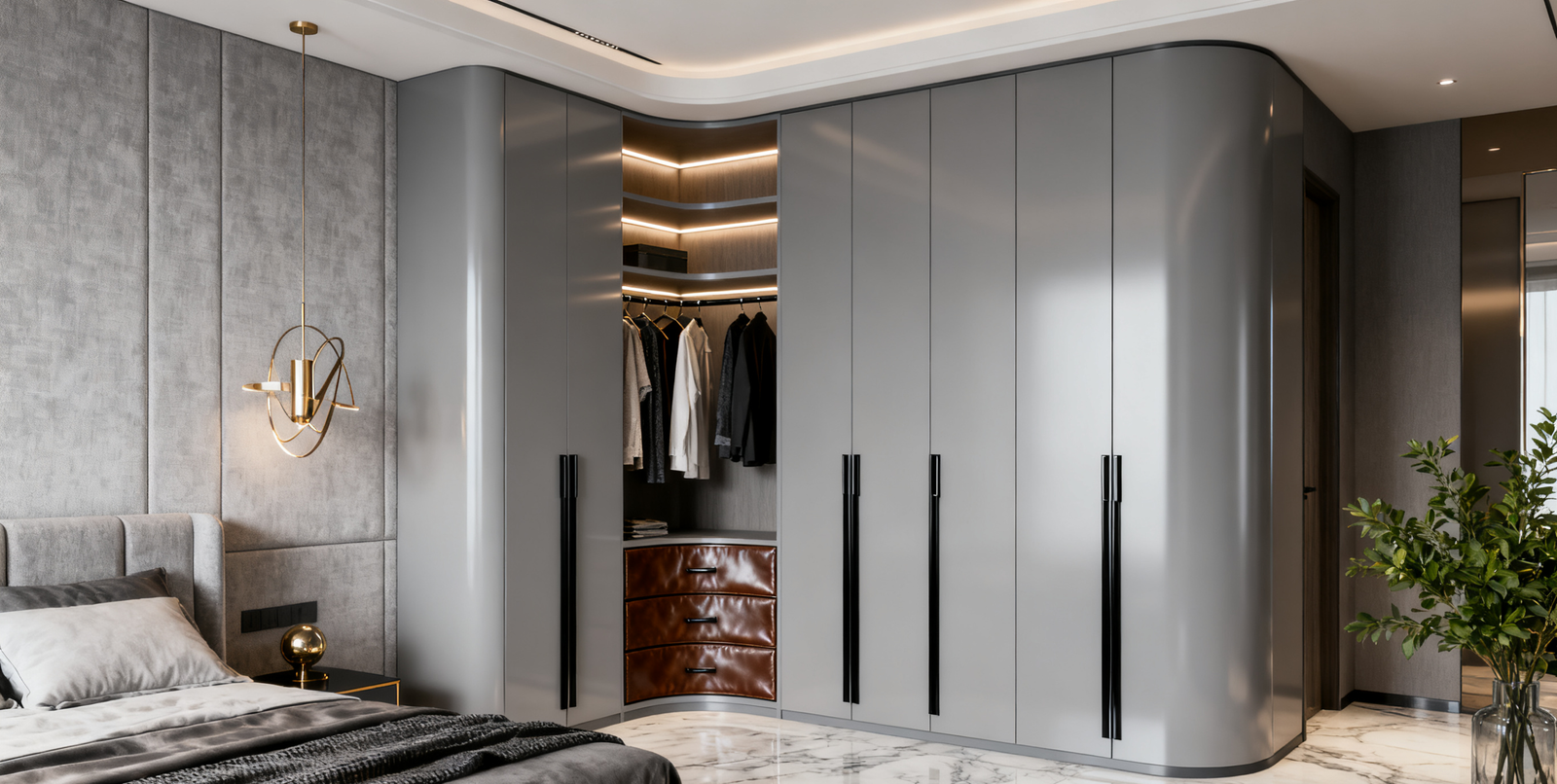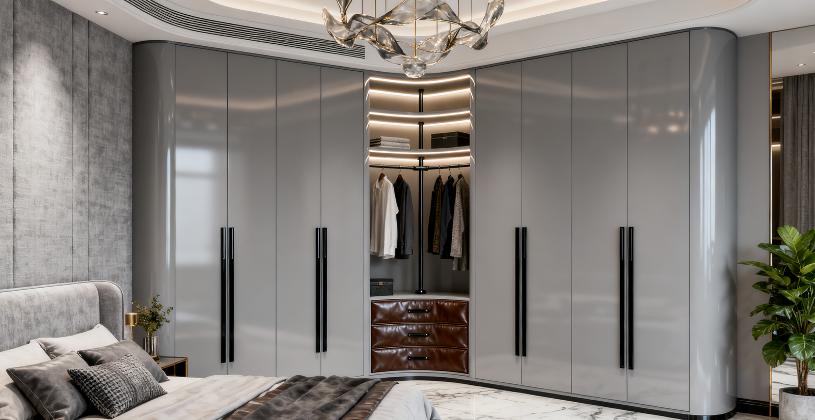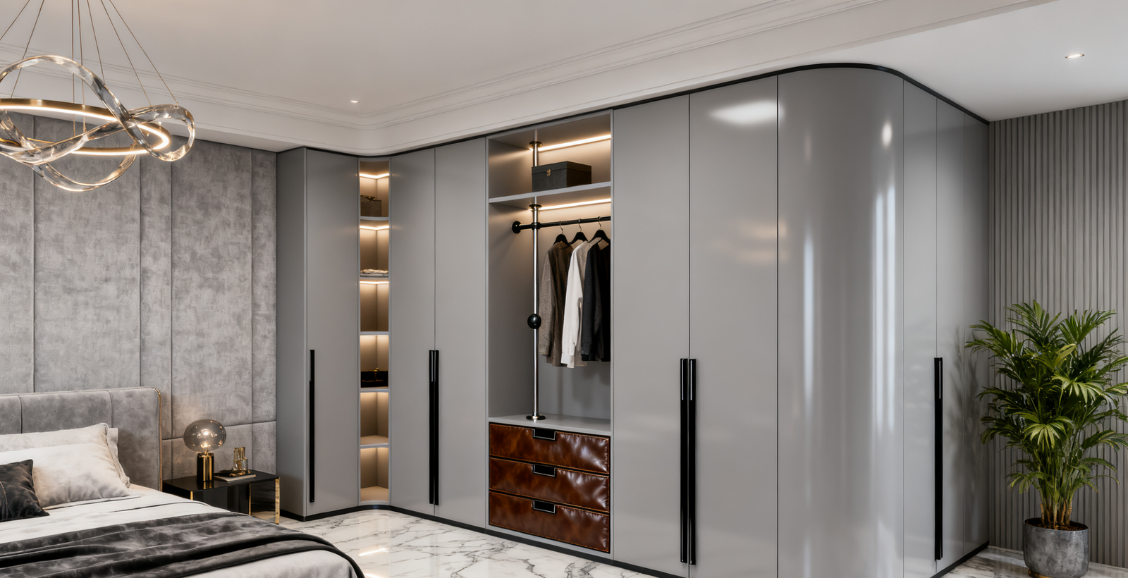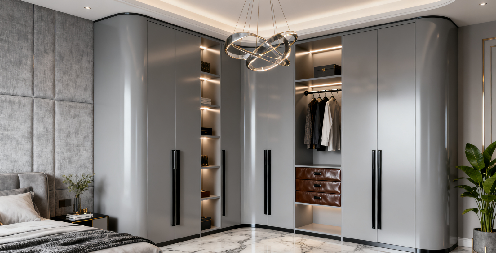 Modern Luxury Light Grey Wardrobe – “Nilo” Custom Bedroom Design