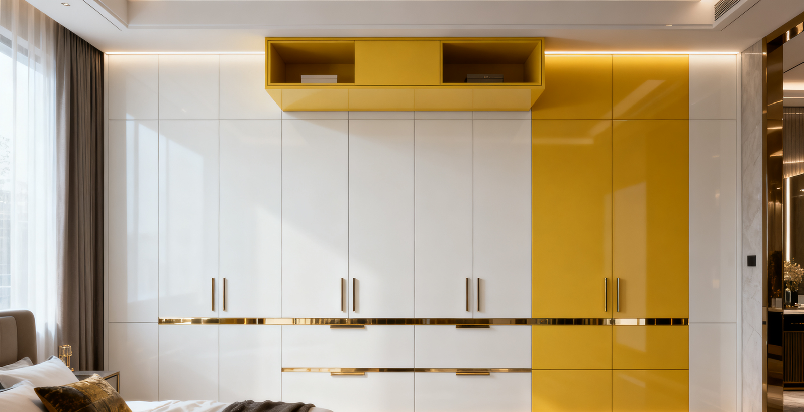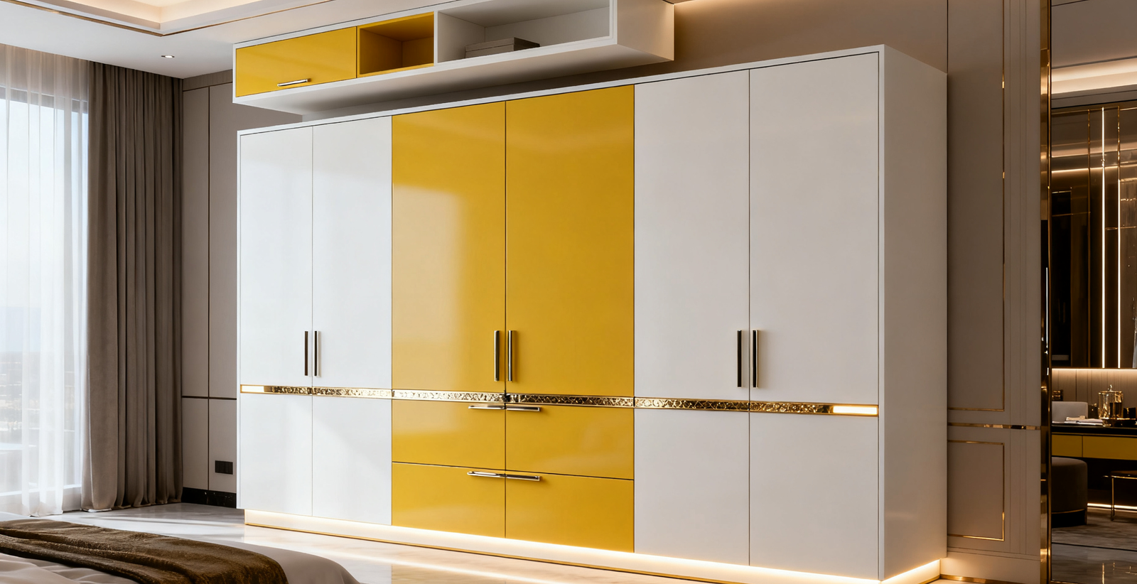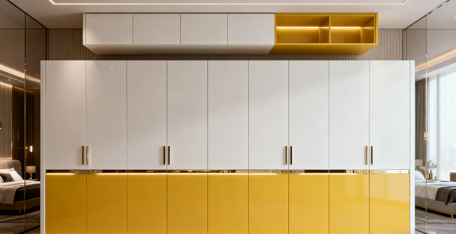 Modern white & pudding yellow melamine wardrobe “The Cannage” by PHINOCABINET — sleek storage, durable materials, high-quality hardware. Custom quote available.